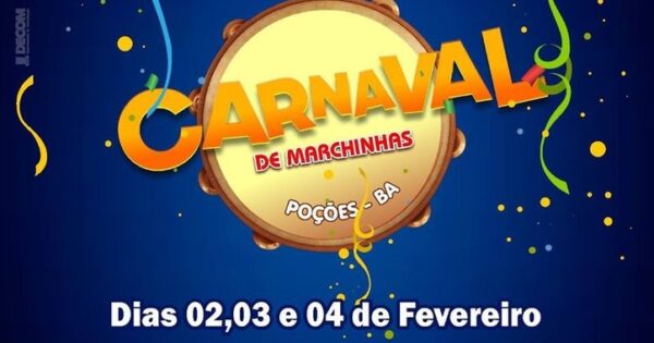 A Prefeitura Municipal de Poções, através da Coordenação de Cultura, vai realizar o 2º Carnaval Cultural de Marchinhas de Poções. O evento acontece nos dias 02, 03 e 04 de Fevereiro na Praça da Juventude e na Praça Raimundo Pereira de Magalhães, Centro de Poções. Participe! -