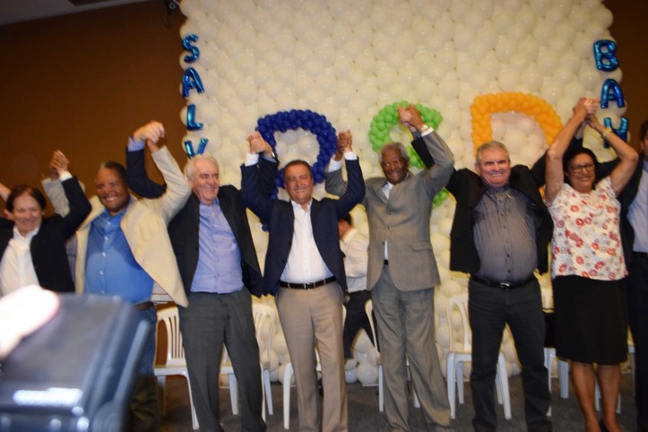 Com o auditório da União dos Municípios da Bahia (UPB) lotado, o Partido Social Democrático (PSD) realizou o Primeiro Encontro do PSD 2018 em Salvador, com a participação do governador Rui Costa, dos principais dirigentes e políticos do partido, de moradores de diversos bairros e lideranças políticas e sociais de todo o estado. Durante o evento, foram debatidos os rumos da legenda sob a liderança do senador Otto Alencar, o fortalecimento do PSD na capital, filiações partidárias para 2018, além do incentivo a participação da mulher na política. Foram realizadas, inclusive, homenagens às mulheres que lideram o partido, como a deputada estadual Ivana Bastos e a suplente de vereadora, Débora Santana. Em seu pronunciamento, o governador Rui Costa recordou que foi o presidente municipal do partido, vereador Edvaldo Brito, como prefeito interino, quem assinou o convênio intermunicipal que transferiu o metrô do município para o Estado. “Se o povo da Bahia hoje anda de metrô, tem que agradecer ao senhor por assinar este documento, que foi o primeiro passo”, declarou. Já o senador Otto Alencar destacou que crescimento do partido no Estado: “O PSD cresce por ter nomes que acreditam na força do trabalho como forma de beneficiar a todos os baianos”, afirmou o presidente estadual do partido. Por sua vez, Edvaldo Brito, citou a renovação do partido com Antonio Brito e Otto Filho. “Vejo esses dois jovens que, juntamente com o governador Rui Costa, serão o futuro da política na Bahia”, disse. Compareceram ao evento o deputado federal mais votado do partido na capital, Antonio Brito, o presidente da Assembleia Legislativa da Bahia, Ângelo Coronel, o secretário de Infraestrutura do Estado, Marcus Cavalcanti e diversos deputados estaduais, prefeitos e vereadores.