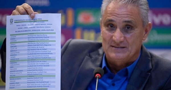 Após convocar os 23 atletas que comporão o elenco da seleção brasileira na Copa do Mundo na Rússia, o técnico Tite em entrevista coletiva, disse que considera o Brasil como favorito a ganhar a Copa. O treinador assumiu a responsabilidade, mas dividiu o peso. Na visão dele, o time entre como “um dos favoritos”. “O ... -