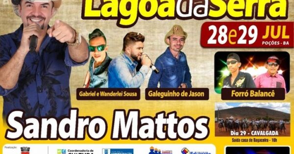 Acontece nos dias 28 e 29 de Julho a Tradicional Festa de Lagoa da Serra, zona rural de Poções, com as seguintes atrações: Gabriel e Wanderley Souza, Galeguinho de Jason,Forró Balancê e o sucesso regional Sandro Matos. No dia 29 acontece a tradicional Cavalgada com saída da casa de Bagaceira ao som do Caverna Som. ... -
