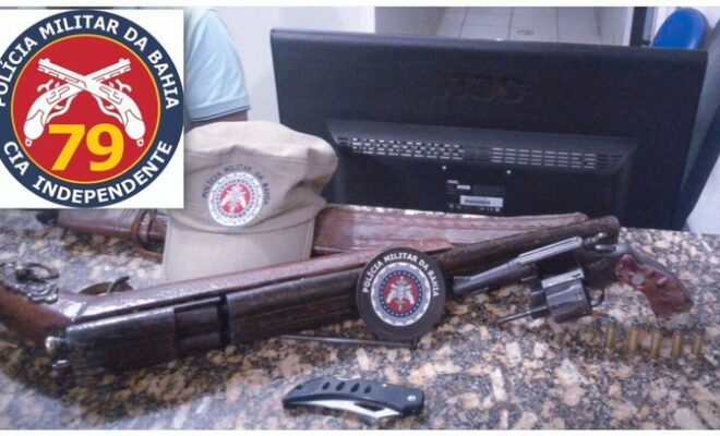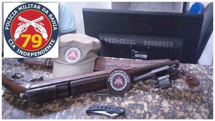 Na tarde deste domingo (02), policiais militares da 79ª CIPM detiveram Joselito Coelho da Silva (52) por porte ilegal de arma de fogo na cidade de Boa Nova. A guarnição foi solicitada por populares para averiguar uma situação de vias de fato entre irmãos. Ao chegar no local, testemunhas relataram que dois irmãos entraram em luta corporal após um deles ter tentado contra a vida do outro, de posse de uma arma de fogo. O agressor foi desarmado pela vítima, e esta entregou as armas que estavam em posse do autor, que evadiu do local. Após diligências, o acusado foi encontrado, vindo a confessar os delitos. Vítima, autor e uma testemunha foram encaminhados, juntamente com o material, para o DISEP. Material apreendido: 01 (uma) espingarda artesanal; 01 (um) revólver cal. 32; 05 (cinco) munições cal. 32 intactas; 01 (um) facão; 01 (um) canivete; 01 (um) aparelho celular.