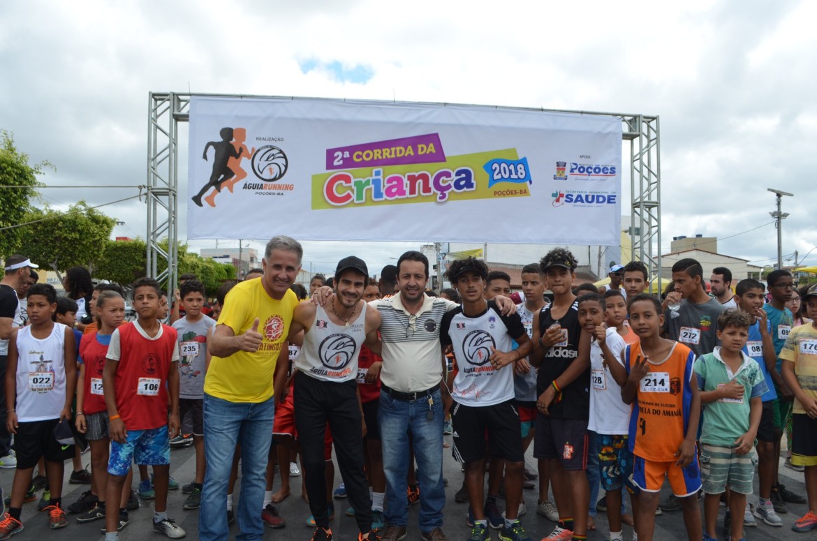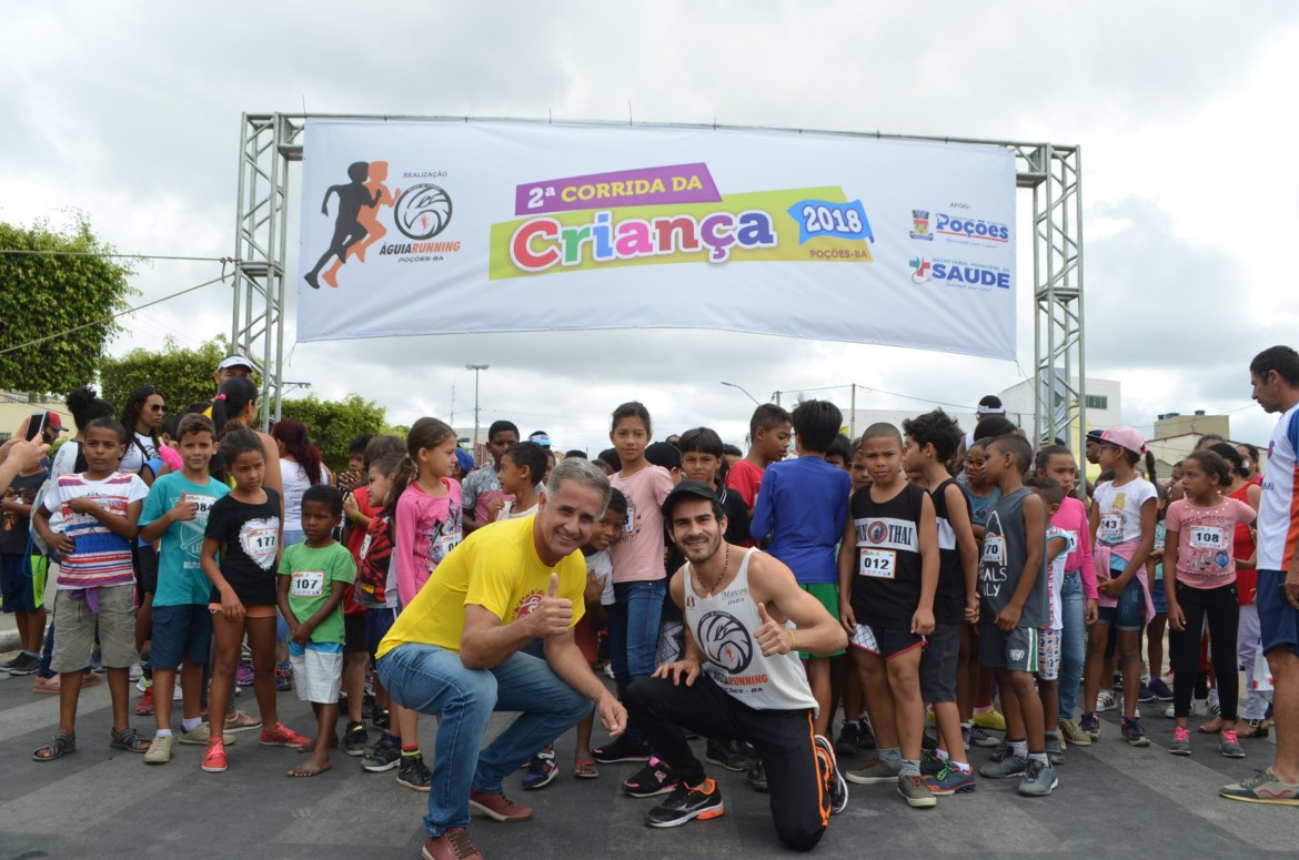A corrida teve duas categorias, sendo de 6 a 10 anos e de 11 a 14 anos, com premiação do 1° ao 5° lugar, tendo troféus, brindes e medalhas para todos os participantes. A concentração aconteceu na Praça do Divino, com percurso da corrida no trecho da Avenida Vitória da Conquista. “É com muito prazer que o nosso grupo realiza a 2ª Corrida da Criança. Nossa ideia é incentivar as crianças para que no dia a dia pratiquem atividade física, além de comemorar o dia delas. Também queríamos proporcionar entretenimento esportivo para toda família e deu muito certo, ficaram todos felizes. Agradeço aos nossos apoiadores, de um modo especial a Prefeitura de Poções, na pessoa do nosso vice Jorge Luis”, disse Maicon Chagas, líder do grupo Águia Running. Clique aqui e veja as fotos:
