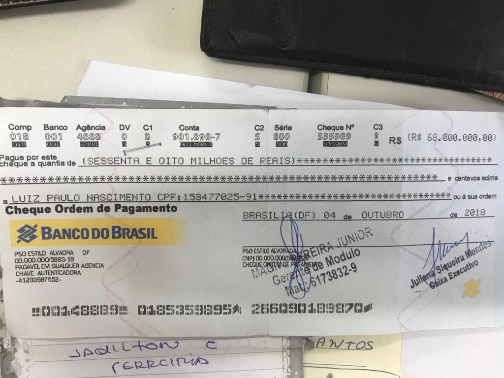 Nesta quarta, 17 de outubro de 2018, 11(onze) pessoas foram conduzidas à DT de Poções pela PM, ao tentarem descontar um cheque falsificado do Banco do Brasil, supostamente emitido por um órgão federal e preenchido no valor de R$ 68.0000,00(secenta e oito milhões de reais).