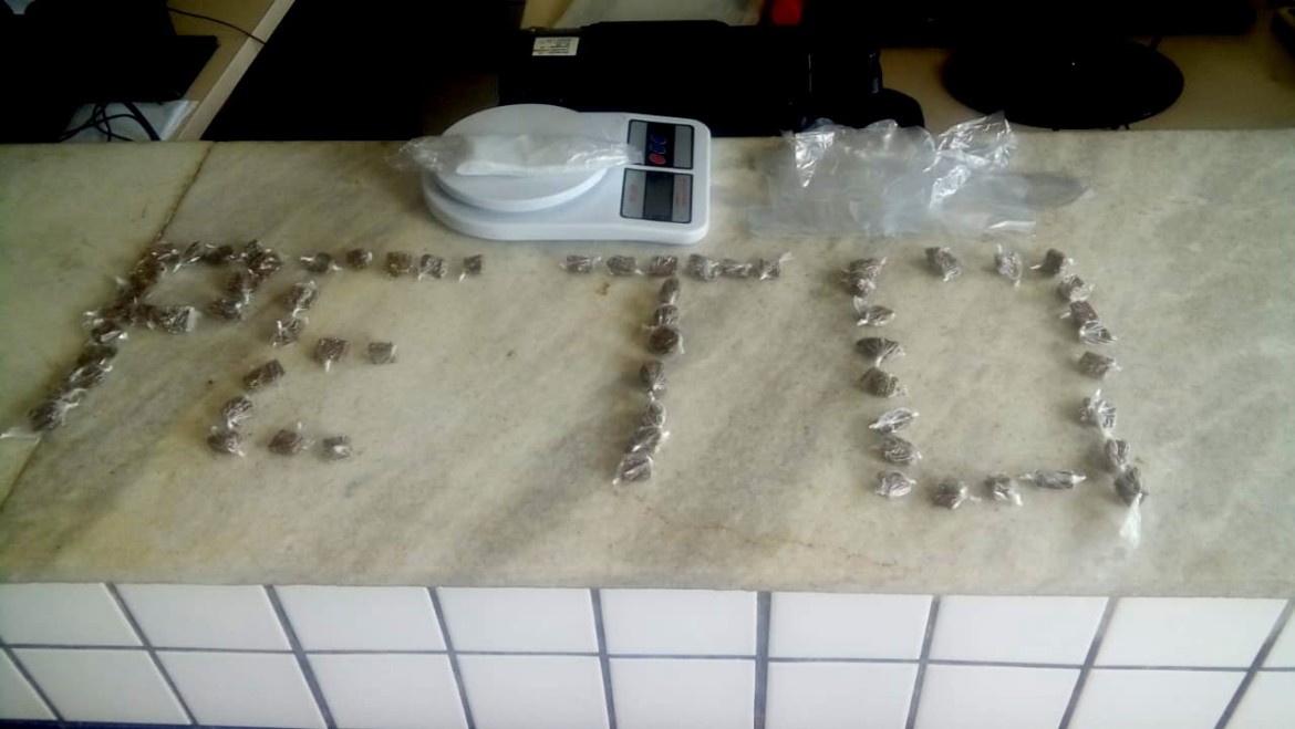 Na manha dessa segunda-feira (10), policiais militares da 79ª CIPM prenderam em flagrante uma mulher por tráfico de drogas no bairro Primavera, na cidade de Poções. A guarnição chegou ao local após uma denúncia anônima dando conta que em uma residência na Rua Frederico Costa haveria uma casa servindo de ponto de tráfico de drogas. Durante o patrulhamento no supramencionado endereço, os policiais militares visualizam uma mulher a qual ao avistar a guarnição jogou um pacote em cima da sua casa. Diante da atitude suspeita, foi realizada a abordagem policial momento em que foi localizado o objeto dispensado e em seu interior foram encontrados papelotes de maconha, balança de precisão e varias embalagens utilizadas para acondicionar drogas. Diante dos fatos, a mulher identificada como Maria Ângela (27) foi conduzida à delegacia onde foi autuada em flagrante delito por tráfico de entorpercente. Materiais apreendidos: 66 (sessenta e seis) papelotes de maconha; 01(uma) balança de precisão; Diversas embalagens para acondicionar substâncias entorpecentes.