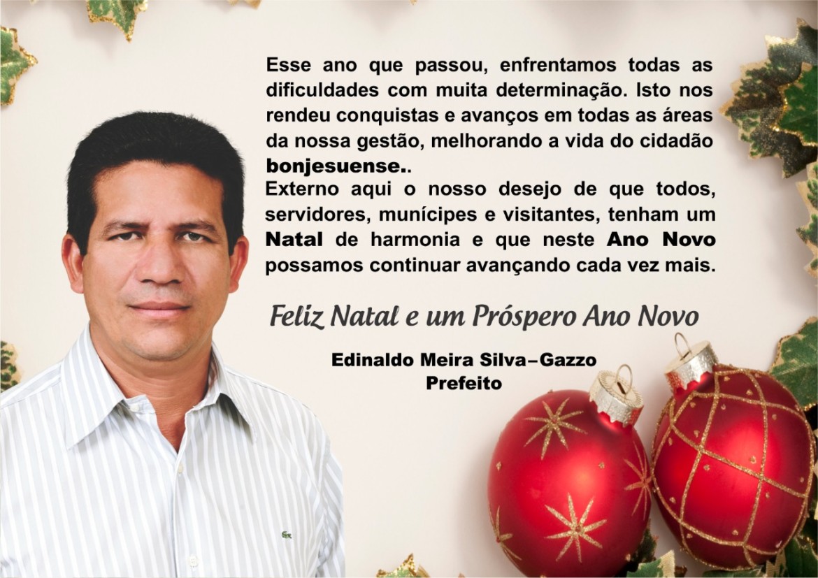 Feliz Natal: Mensagem do prefeito de Bom Jesus da Serra, Edinaldo Meira “Gazzo”