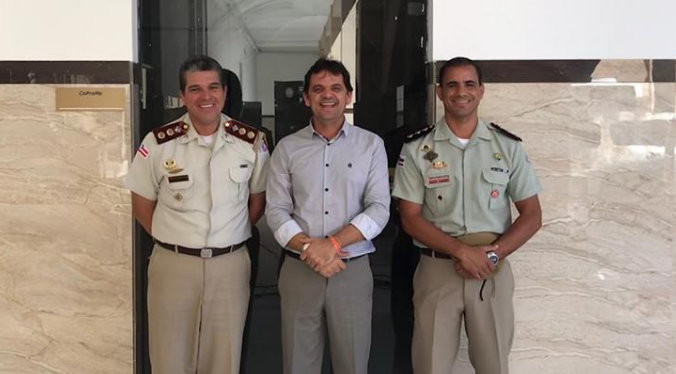 Nesta quinta feira (24), o comandante da 79ª CIPM, Capitão Alécio Maques, participou de uma reunião com o Prefeito de Planalto, Edilson Duarte da Cunha(Dico) e o Tenente Coronel Albuquerque, no quartel do Comando Geral em Salvador. Foi discutido e apresentado os trâmites para a implantação do modelo CPM(Colegio da Polícia Militar)de ensino para município de Planalto. Em breve alguns alunos terão oportunidade de participar da metodologia de ensino que vem se tornando referência no estado da Bahia. FONTE: 79ª CIPM/CPRSO