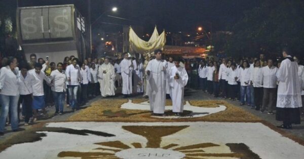 Na noite desta quinta-feira (20), a Paróquia do Divino Espírito Santo realizou a celebração da solenidade de Corpus Christi. A Missa foi realizada na igreja Matriz, às 19h. Após a missa aconteceu a procissão até a Igrejinha, onde centenas de fieis participaram e receberam a bênção do Santíssimo. A Festa de “Corpus Christi” é a celebração ...