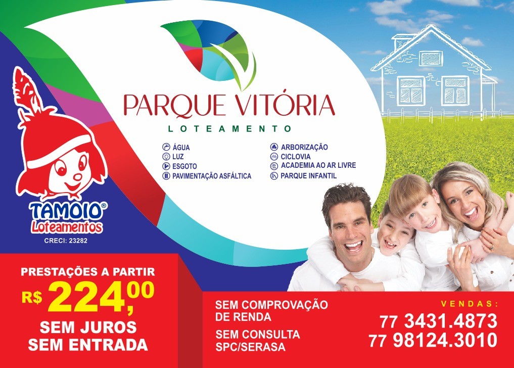 Então não perca tempo! Converse com um dos nossos corretores e conheça melhor o nosso projeto e os planos de financiamento. Venha viver bem por apenas R$ 224,00 mensais, sem entrada e sem juros. É uma excelente oportunidade para morar ou investir. Plantão de Vendas: Avenida Vitória da Conquista, 728. Estande de Vendas: Avenida Siqueira Campos, S/N. Fone: (77) 3431-4873 ou Whatsapp: (77) 98124-3010. #ParqueVitória #TamoioLoteamentos #PoçõesBahia