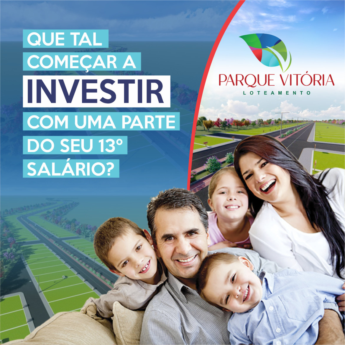 E aí, você já sabe o que vai fazer com seu 13º salário? É claro que não vai gastar a toa, né?! Então faça o melhor investimento e compre um lote no Parque Vitória Loteamento. Lotes com Água, esgoto, energia, pavimentação asfáltica, academia ao ar livre, ciclovia, parque infantil e muito mais a partir de R$ 224 mensais fixas. Sem entrada e sem juros! Tá imperdível! Realize seu sonho de morar na maior Avenida de Poções, com via de mão dupla e acesso a BR-116. Visite nossa Central de Vendas na Avenida Vitória da Conquista, 728, Centro, ou nossos Estandes de Vendas na Praça do Divino ou no próprio loteamento. Você também pode agendar uma visita com nossos corretores. Compre agora! Fone: (77) 3431-4873. Whatsapp: (77) 98124-3010.