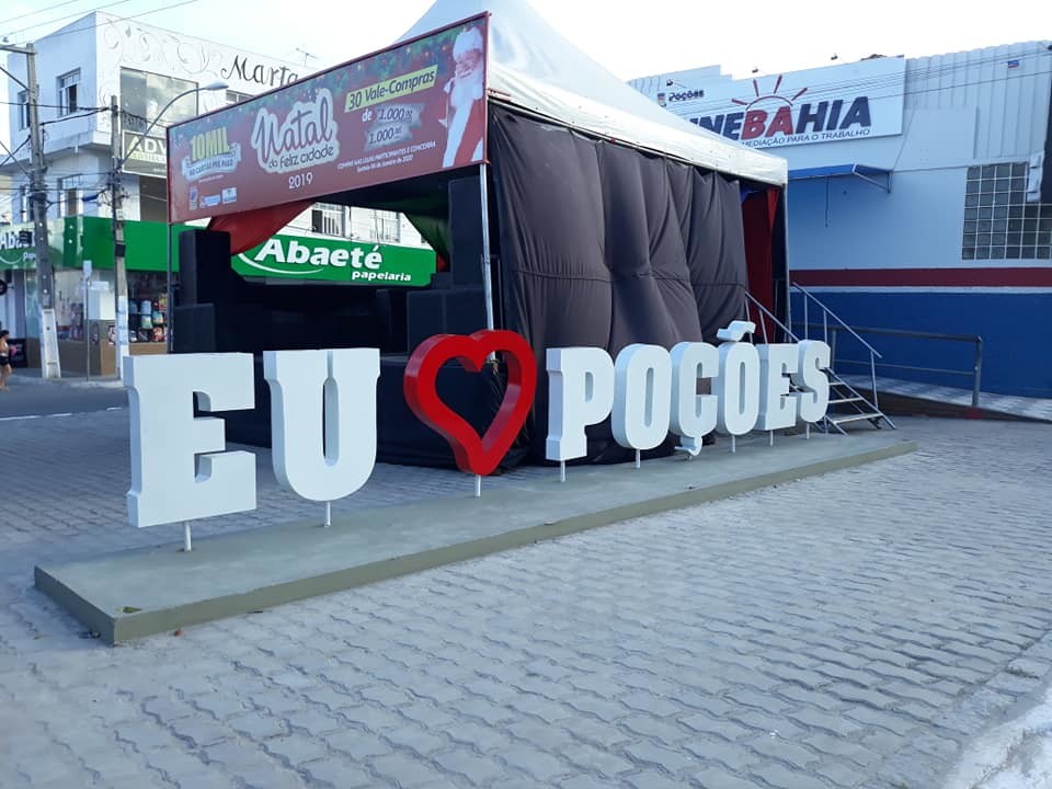 O amor pela cidade de Poções agora está estampado em um dos principais pontos do centro. A homenagem foi fixada pela Prefeitura Municipal no espaço em frente ao prédio do SineBahia. Quem passa pelo local admira, aprova a ideia e, é claro, aproveita para tirar fotos. Nas redes sociais, nesta terça-feira (24/12), já começam a circular muitas fotos do letreiro “Eu Amo Poções” com mensagens de carinho pela cidade e das pessoas contando o sentimento de pertencimento à Poções. DECOM-PMP