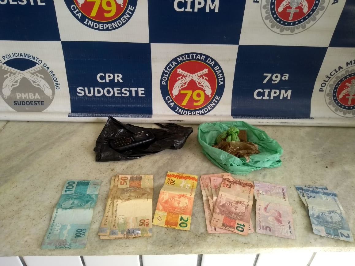 Neste final de semana, policiais militares da 79ª CIPM prenderam duas pessoas por tráfico de drogas na cidade de Poções. As guarnições empreendiam rondas pela cidade, quando avistaram dois suspeitos a bordo de uma motocicleta e procederam com abordagem. Com eles foram apreendidos: R$ 319,00 (trezentos e dezenove reais); 83g (oitenta e três gramas) de maconha; 01 (um) aparelho celular LG. Os homens e o material apreendido foram encaminhados às autoridades competentes para a adoção das medidas cabíveis. Fonte: 79ª CIPM/ASCOM