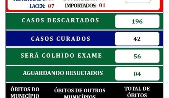 Boletim epidemiológico: 64 casos confirmados, sendo 01 importado e 42 curados