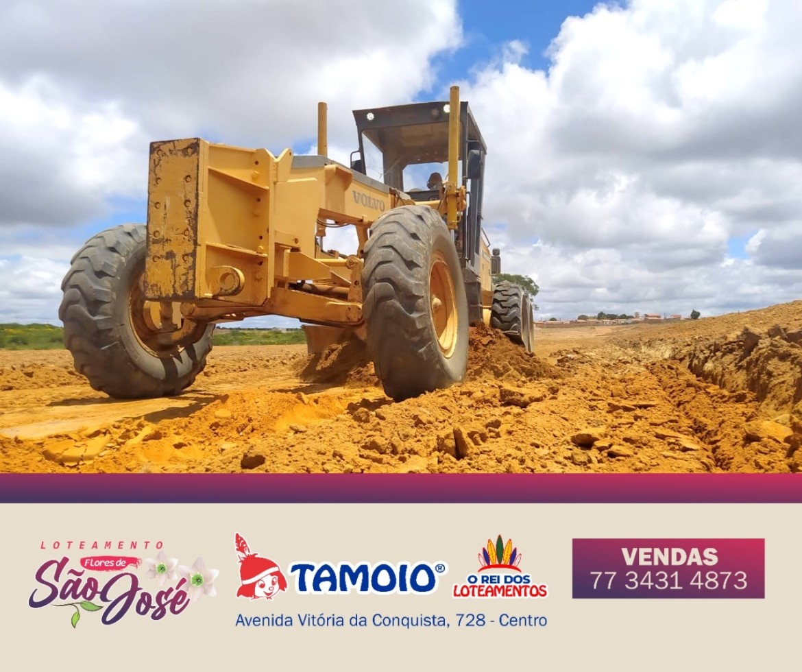 As obras do loteamento Flores de São José estão a todo vapor. A Tamoio está realizando os serviços de terraplanagem, abertura de ruas e marcação dos lotes. Em breve Poções terá o melhor loteamento da região.
