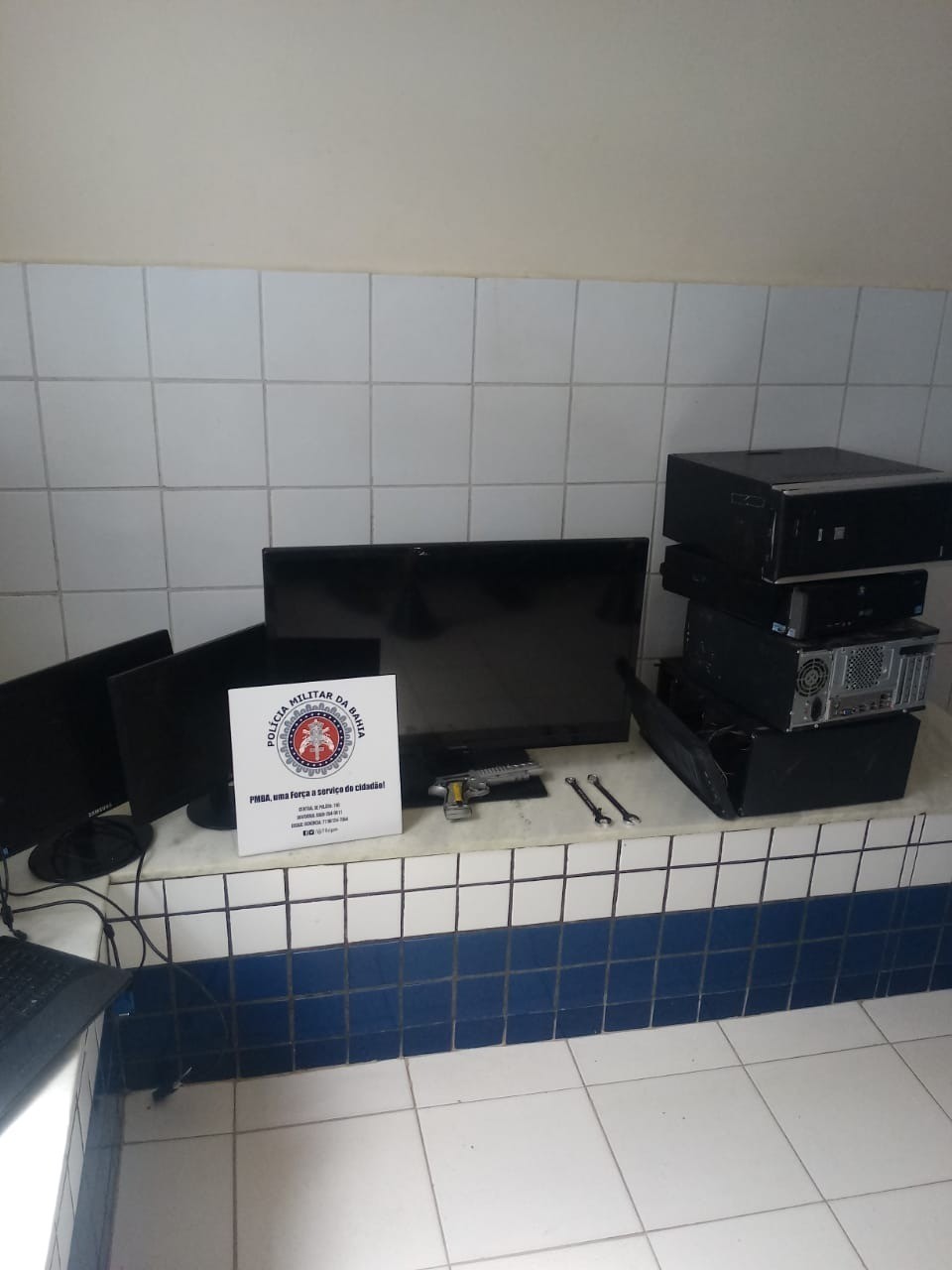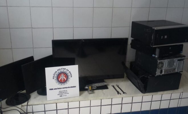 Na tarde desta segunda-feira (05), policiais militares da 79ªCIPM prenderam o autor de furto qualificado (arrombamento) ao posto de saúde Francisco Paradella, no município de Poções. Desde a ocorrência do crime, nesta madrugada (05), os militares intensificaram o patrulhamento até que obtiveram a informação sobre a localização dos itens que foram subtraídos do posto de saúde. Imediatamente, a guarnição se dirigiu para o endereço informado, onde obteve êxito em conter o autor do delito. Em sua posse, os policiais militares encontraram os seguintes objetos: 01 (uma) TV 32 polegadas; 03 (três) monitores de computador; 01 (um) notebook LG; 04 (quatro) CPU’s de computador; 02 (dois) carregadores de notebook; 02 (duas) chaves de boca; 01 (um) controle remoto; 01 (um) perfurador de papel; Certa quantidade de medicamentos, preservativos e seringas. Diante do fato ilícito, os materiais foram apreendidos e o autor apresentado à autoridade policial competente, para que as medidas judiciais fossem aplicadas. Fonte: 79ªCIPM