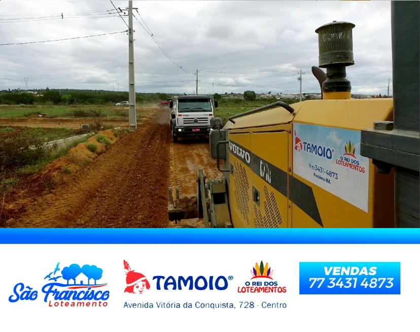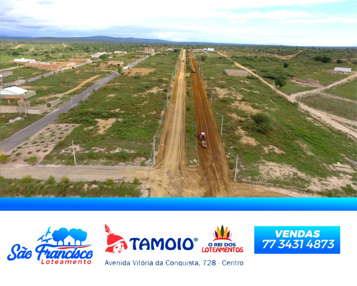 Os Últimos lotes estão disponíveis a partir de R$ 50 mil avista ou financiado pela caixa econômica federal. Plantão de Vendas: Avenida Vitória da Conquista, 728. Fone: (77) 3431-4873 ou Whatsapp: (77) 98124-3010. O São Francisco é mais um empreendimento com a qualidade Tamoio — O rei dos loteamentos.