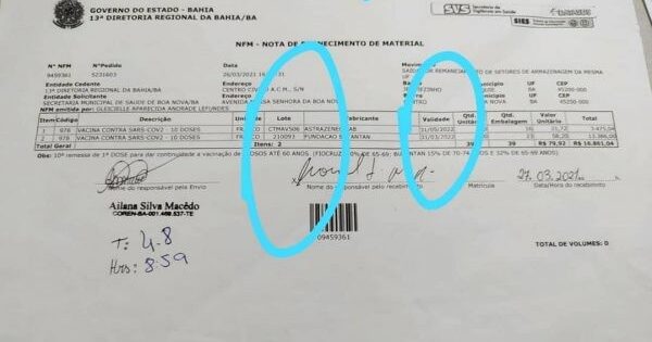 Não houve vacinação com lote vencido em Boa Nova a vacina com o referido lote vence em 31/05/2022. A notícia divulgada pela Folha de S. Paulo e reproduzida por diversos blogs e ganhou ampla repercussão. A Secretaria Municipal de Saúde de Boa Nova, esclarece que o lote de vacinas Astra Zeneca/Oxford de número –CTMAV506, foi ...