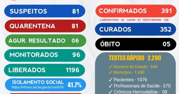 Boa Nova: Sobe para 34 o número de casos ativos da Covid-19 no município.