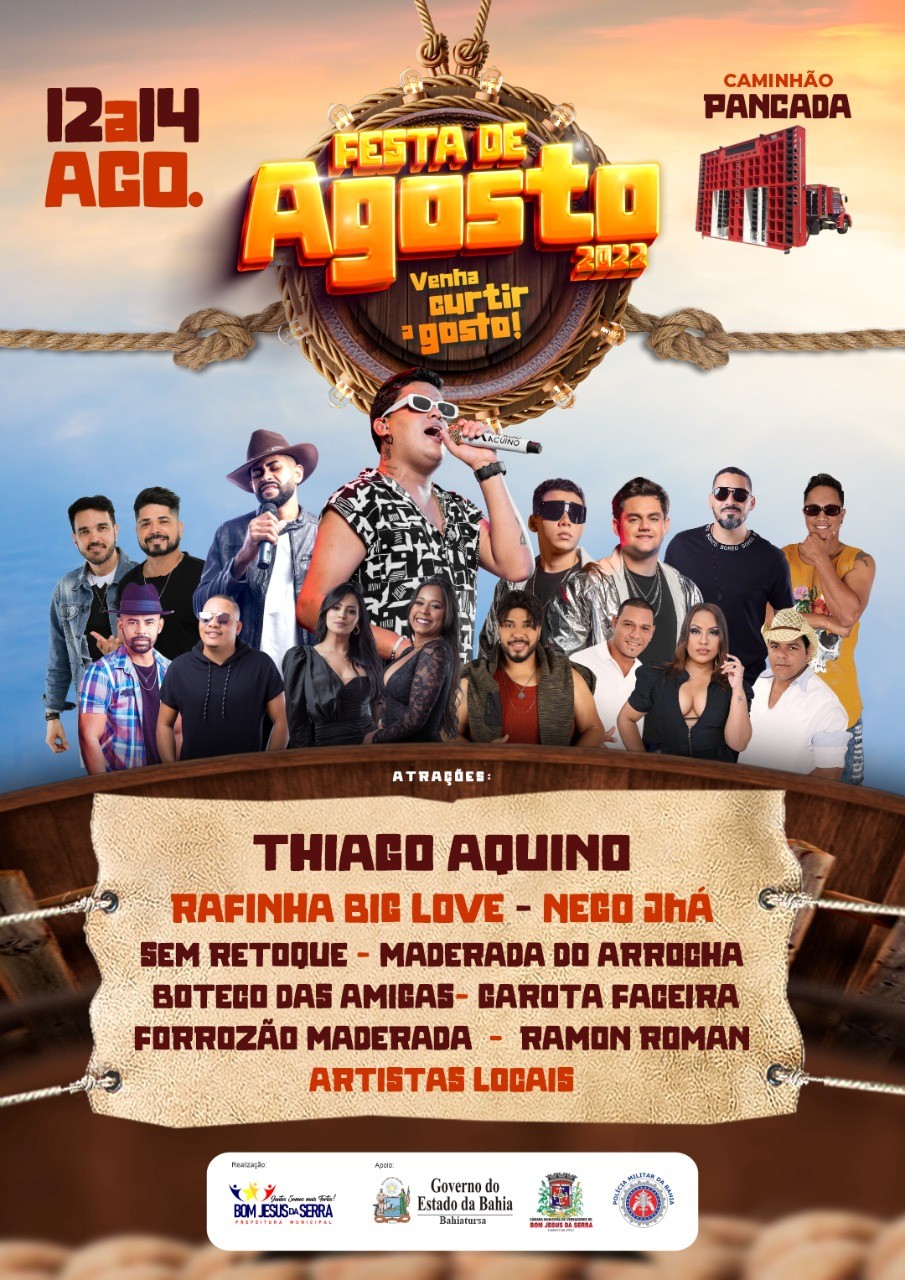 “Bom Jesus da Serra é conhecida por ter um povo hospitaleiro e que sabe receber bem os turistas. A cidade é pequena, mas muito hospitaleira e todo mundo que vem sempre volta. A Festa de Agosto, então é esse grande encontro entre amigos, uma festa familiar e todos se sentem em casa. Por isso, é com grande alegria que anunciamos a grade da festa e convidamos a todos para fazerem parte dessa linda celebração da vida”, disse Jornandinho, prefeito de Bom Jesus da Serra.