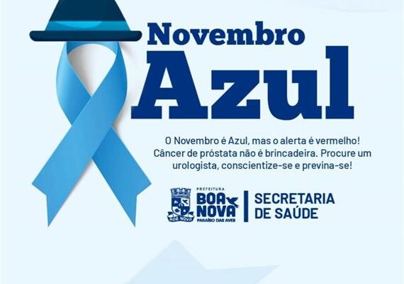 A Prefeitura de Boa Nova através da Secretaria de Saúde, lança Campanha Novembro Azul, mês dedicado aos homens em combate ao câncer de próstata. Depois do Outubro Rosa – que é dedicado à prevenção do câncer de mama –, o Novembro Azul vem para conscientizar sobre a saúde masculina. Criado pelo Instituto Lado a Lado pela Vida, em meados de 2011, a data surgiu para tratar especialmente do câncer de próstata, doença que deve atingir aproximadamente 68 mil homens em 2018, segundo o Instituto Nacional do Câncer (Inca). É o tipo de câncer mais comum entre os homens, excluindo os tumores de pele. Para ter uma ideia comparativa, este ano, estima-se que a incidência do câncer de mama nas mulheres seja de 60 mil casos”, diz Volney Soares Lima, diretor da Sociedade Brasileira de Oncologia Clínica (Sboc).
