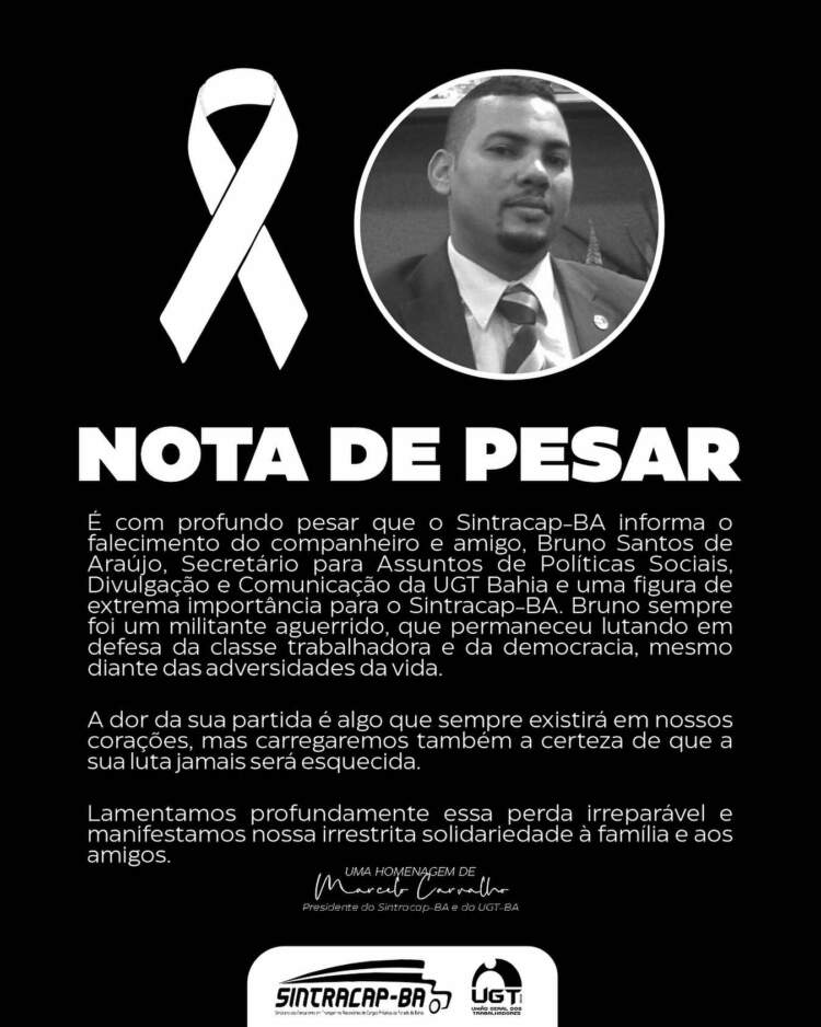 Com muito pesar que o Portal Sudoeste informa o falecimento de Bruno Santos de Araújo, aos 40 anos de idade.