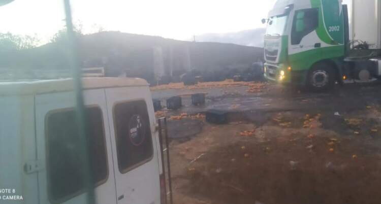 Na manhã desta quinta-feira (6), por volta das 5h, um caminhão carregado de tangerinas tombou na Rodovia Santos Dumont, BR-116, em uma curva na entrada que dá acesso ao povoado do Penachinho.