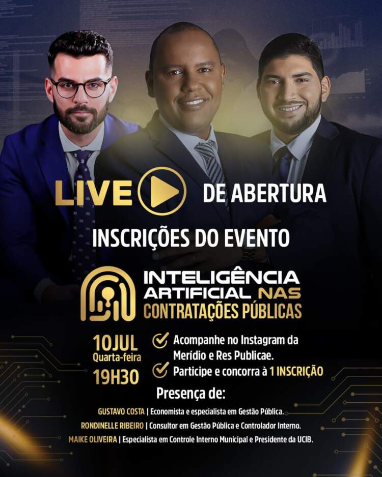 Os especialistas @rondinelleribeiro e @gutucosta , juntamente com o Presidente da União das Controladorias da Bahia, @oliveiramaike , trarão insights valiosos sobre o uso da IA na fase preparatória das licitações, além dos desafios e oportunidades trazidos por esta ferramenta tão inovadora.