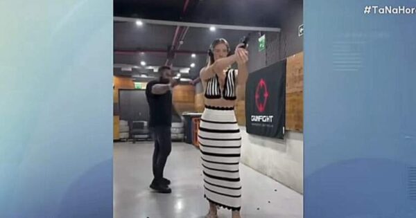Uma modelo colocou sua vida em risco ao gravar um vídeo em um estande de tiro esportivo. Nas imagens, seu namorado dispara próximo a ela, e uma bala passa de raspão pela sua cabeça. Apesar do perigo, a influenciadora aparenta se divertir com a situação, rindo durante os disparos.