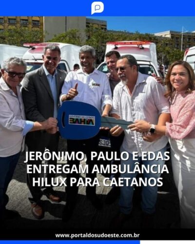 Jerônimo, Paulo e Edas entregam ambulância Hilux para Caetanos