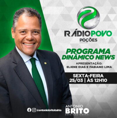 Nesta próxima sexta-feira, dia 25 de março, o Deputado Federal Antônio Brito, estará ao vivo no programa Dinâmico News, da Rádio Povo Poções. Durante ... -
