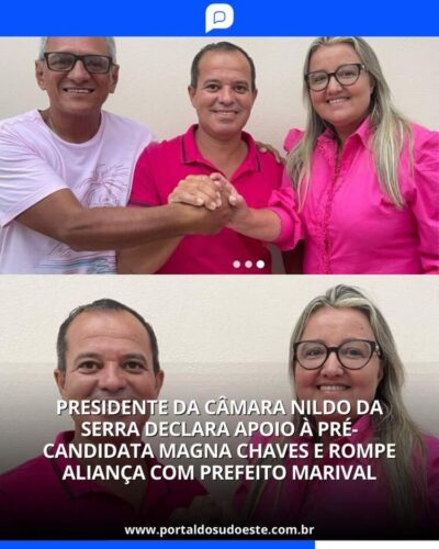 Presidente da Câmara Nildo da Serra Declara Apoio à Pré-Candidata Magna Chaves e Rompe Aliança com Prefeito Marival