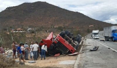 Boa Nova: Carreta tomba na BR-116, trecho do Entroncamento