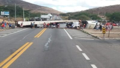 Boa Nova: Carreta tomba e motorista fica gravemente ferido na BR-116