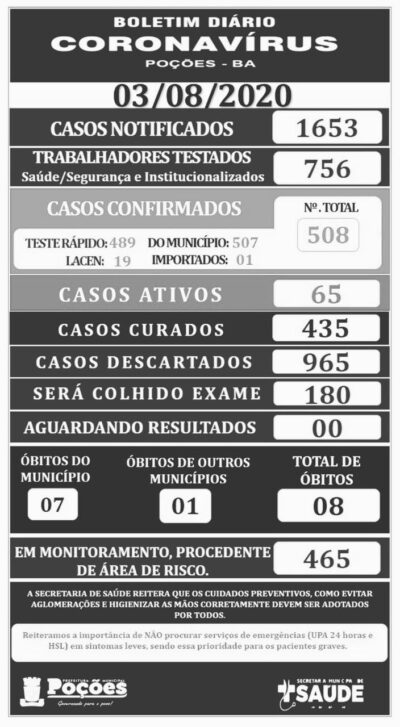 A Prefeitura Municipal de Poções. através da Secretaria de Saúde, divilgou a lista de regiões com casos de coronavírus confirmados. Veja a lista de ... -