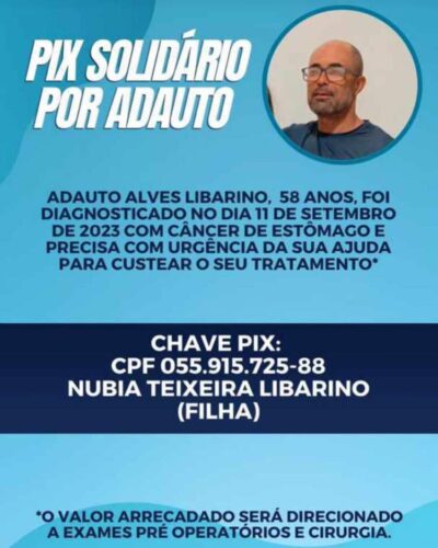 Pix Solidário por Adauto: População se une para ajudar Poçoense em seu tratamento.