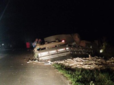 Acidente na BA-262: Caminhão carregado de palmito tomba entre Poções e Nova Canaã