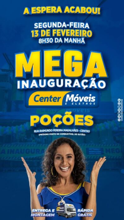 Atenção, Poções! Nesta segunda, 13 de fevereiro às 8h30 da manhã, tem a mega inauguração da loja Center Móveis e Eletros! Na rua Raimundo ... -