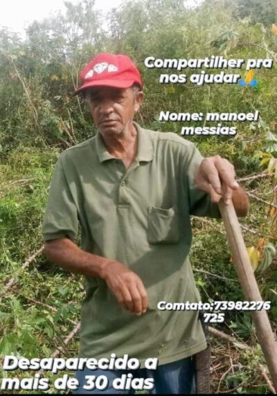 A família do senhor Manoel Messias, de 59 anos, pede ajuda para encontrá-lo. No dia 29 de novembro ele saiu de sua propriedade na ... -
