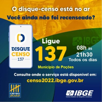 Atenção, Poções! Domicílios ainda não recenseados já podem ligar para o Disque-Censo 137