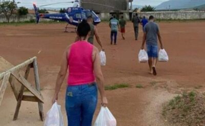 Helicóptero da GRAER auxilia na entrega de alimentos para famílias ilhadas em Mirante