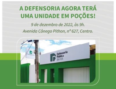 Nesta sexta-feira, 8, às 9h, a Defensoria Pública do Estado da Bahia – DPE/BA inaugura sua nova sede em Poções, cidade no sudoeste do ... -