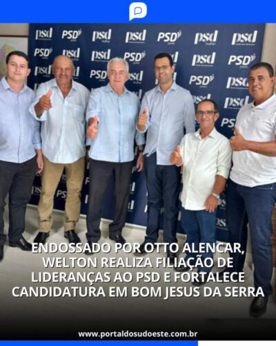 Endossado pelo senador Otto Alencar, Welton Andrade realiza filiação de lideranças ao PSD e fortalece candidatura.