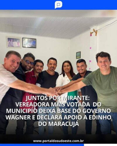 Juntos por Mirante: Vereadora mais votada do município deixa base do governo Wagner e declara apoio a Edinho do Maracujá