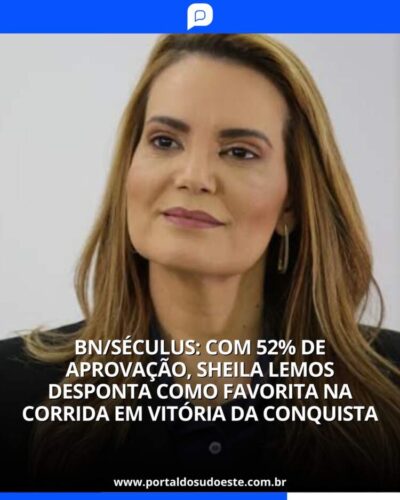 BN/Séculus: Com 52% de aprovação, Sheila Lemos desponta como favorita na corrida em Vitória da Conquista