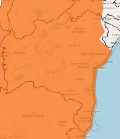Todas as 417 cidades da Bahia estão com alerta laranja de chuvas intensas. A informação foi divulgada pelo Instituto Nacional de Meteorologia (Inmet), na ... -
