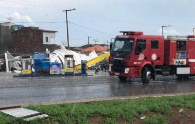 Tempestade em Jequié: temporal destrói cobertura de posto de combustíveis, alaga ruas e derruba ao menos vinte árvores
