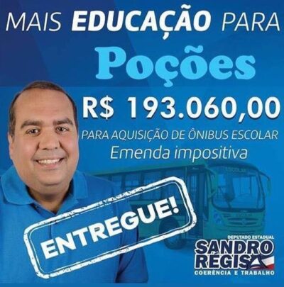 Poções: Prefeitura adquire Ônibus Escolar através de emenda impositiva do Deputado Estadual Sandro Régis