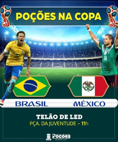 Poções na Copa: Jogo entre Brasil x México terá transmissão ao vivo na Praça da Juventude nesta segunda-feira (02)