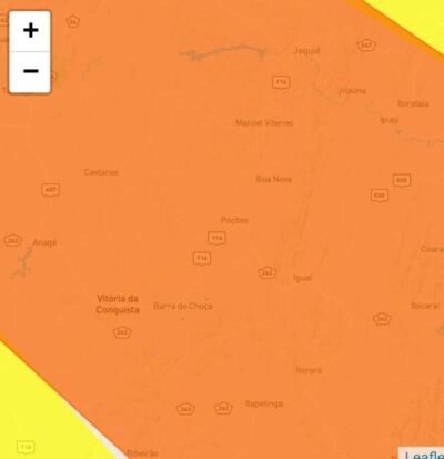 Urgente: Poções, Planalto, Boa Nova, Iguaí, Ibicuí, Canaã, Caetanos, Mirante e Bom Jesus estão sob alerta laranja