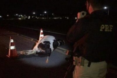 Tragédia na BR-116: carro bate numa vaca; animal morre e condutor fica gravemente ferido em Vitória da Conquista